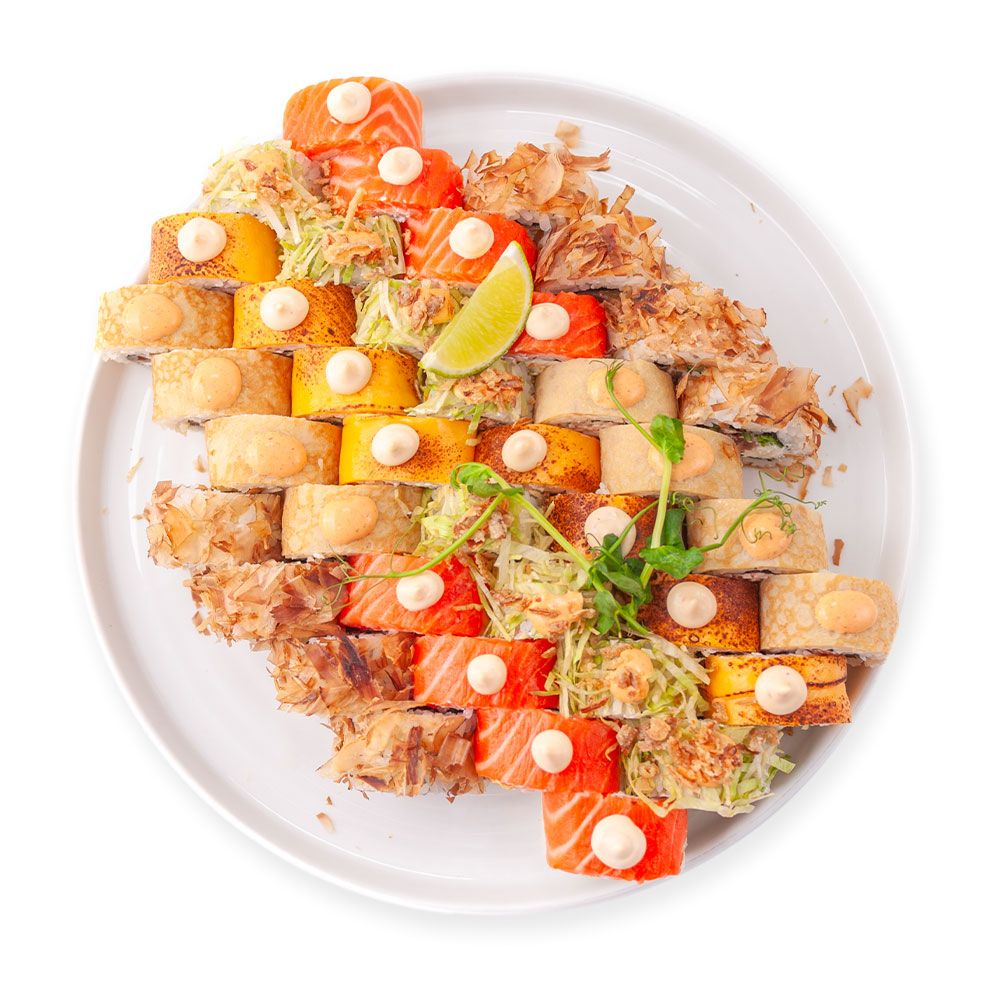 1.Ролл в лососе со сливочным сыром и персиком.