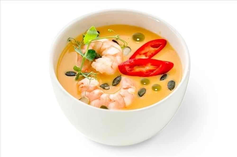 Тыква, лемонграсс, чеснок, мед, сливки, карри приправа, креветка, соль, перец черный молотый, кокосовые сливки, перец чили, семена тыквенные Производитель: ООО "Фьюжн суши"