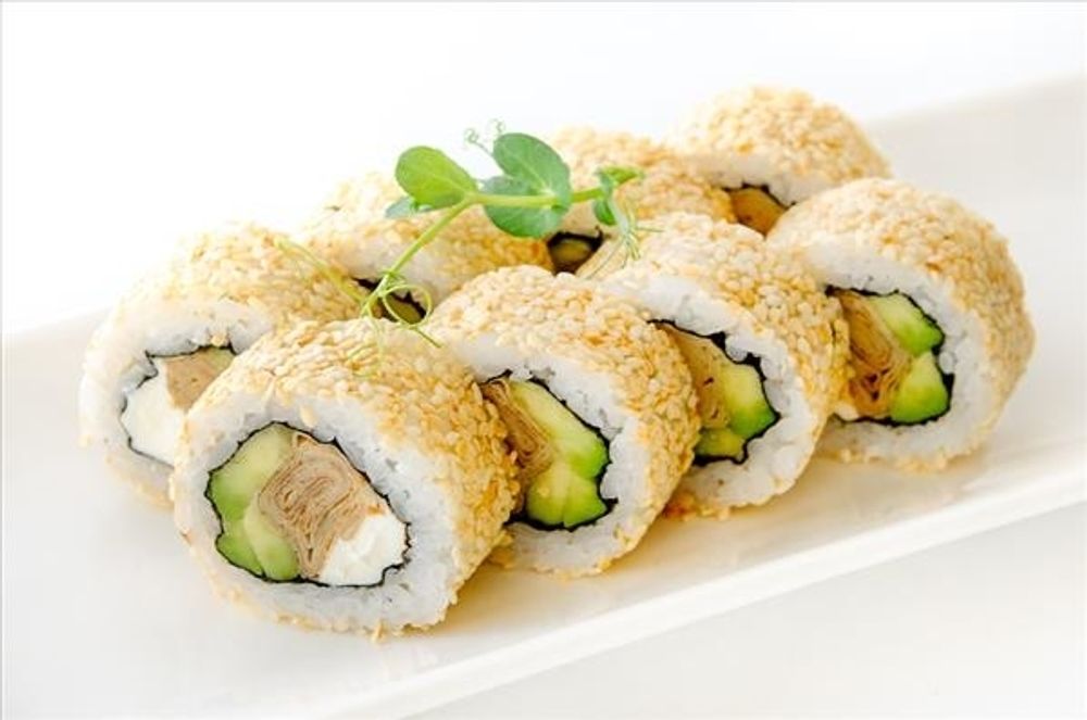 Ролл с лососем в кунжуте